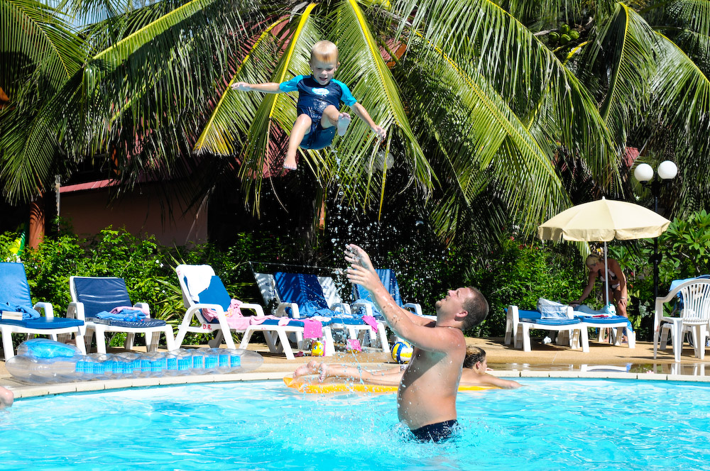 Oskar och poolens lekfarbror, Isak, från bungalow 104